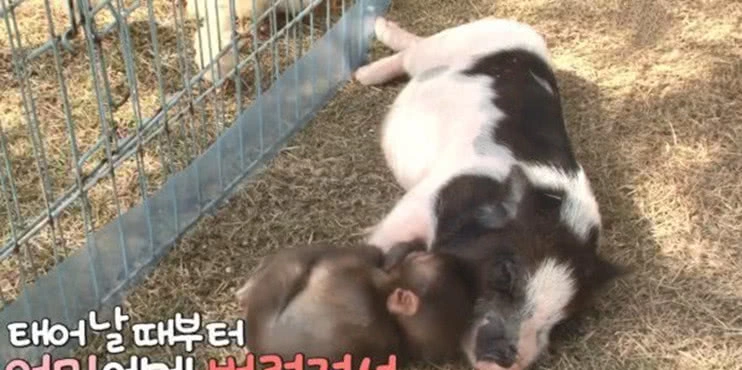 每天这只小猴子都会腻歪在他的后妈身边,趴在这只母猪的背上,母猪则是会拖着它到处溜达。就像很多母亲推着婴儿车,带着自己的孩子出去转悠一样。看到这一幕,人们也觉得非常的温馨,感觉母爱其实是可以跨越物种的。他们两个甚至吃喝住行都在一起。