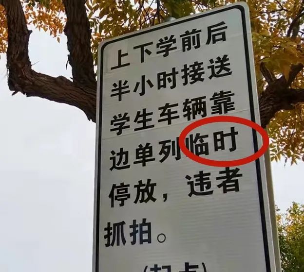 “这个公交站点临近学校,警示牌上的内容说的是,上下学前后半小时,接送学生的车辆可以在路边单列临时停放。我扫了一眼,发现临时’的时’少了一点,变成了一个我不认识的字。”小杨说,汉字千千万,每个字都有它的笔划和结构,一点都少不得,希望这迷路的“一点”能早日回家。