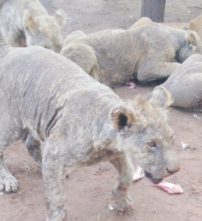 比如泰国的老虎庙,又比如南非的一些狮子农场,几十只狮子挤在一个小小的笼院中,这些狮子被饿得瘦骨嶙峋,同时因为感染寄生虫的原因,身上的毛发都掉光了。但农场主依然没想着要改善,原因是随着狮骨代替虎骨入药之后,农场主为了利益需要的只是狮骨,狮子活得好不好,他们并不关心。