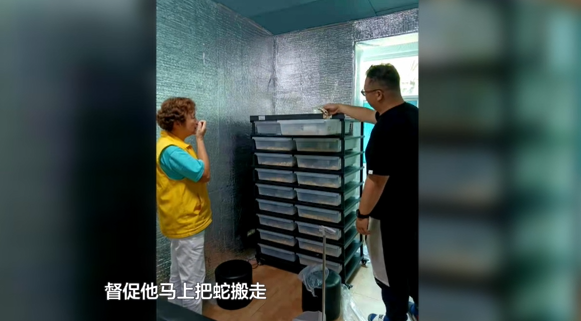 黄河社区居委会工作人员郝凤梅:我们听到居民反映他家养蛇后,我们就及时联系养蛇人过来看了,督促他马上把蛇搬走,他也答应了。