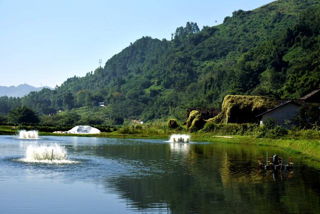 走进綦江区永城镇复兴村,映入眼帘的是一亩亩如镜子一般的水塘,每亩塘中都有几台增氧机在运转,如风车一般,卷起阵阵水花,在阳光下熠熠生辉;塘边种着青草,没过人的鞋帮,随着微风左右摇摆,与荡漾的水面相映成趣。包裹着水塘的是片片树林和竹林,上面站着几只白鹤,时而振翅掠过水面,时而两两相戏,宛若一幅色彩浓重的泼墨图。