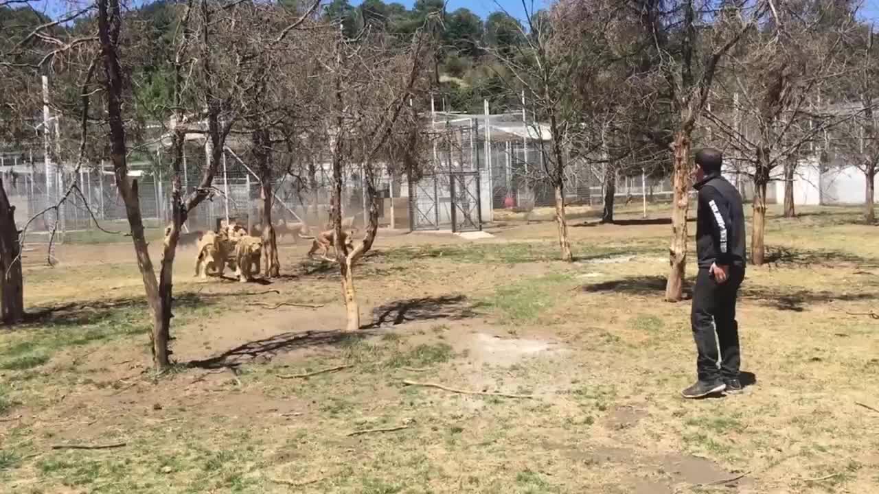 铁笼一打开,“19头狮子”猛的冲向饲养员