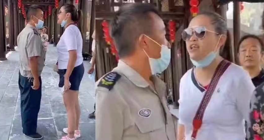 据景区工作人员介绍,发生争吵的位置是在景区内,工作人员此前已提醒过这些游客需要买票才能进入。安保人员发现他们未购票后追了上去,随后双方发生争吵。工作人员报警后,游客离开。