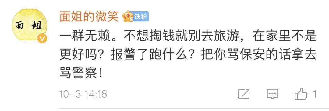 10月2日下午,在湖南湘西墨戎苗寨景区内,几名游客未购买门票就试图强行进入,随后与工作人员发生争执时大喊:“ 你们是不是穷怕了? ” 从现场视频里不难看出,一行人的嚣张气焰。