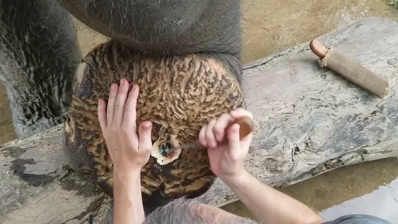 大象脚掌受伤穿孔,饲养员上演“花式修脚”