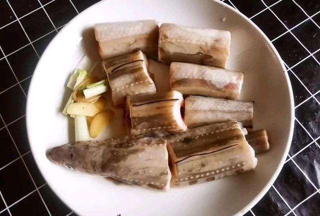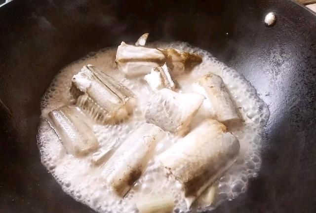 2.锅中入油爆香葱姜蒜,下入鳝鱼段略微煎制一下,烹入料酒和少许白醋后添入开水,炖煮至汤汁浓稠呈奶白色后加盐和胡椒粉调味后即可出锅。