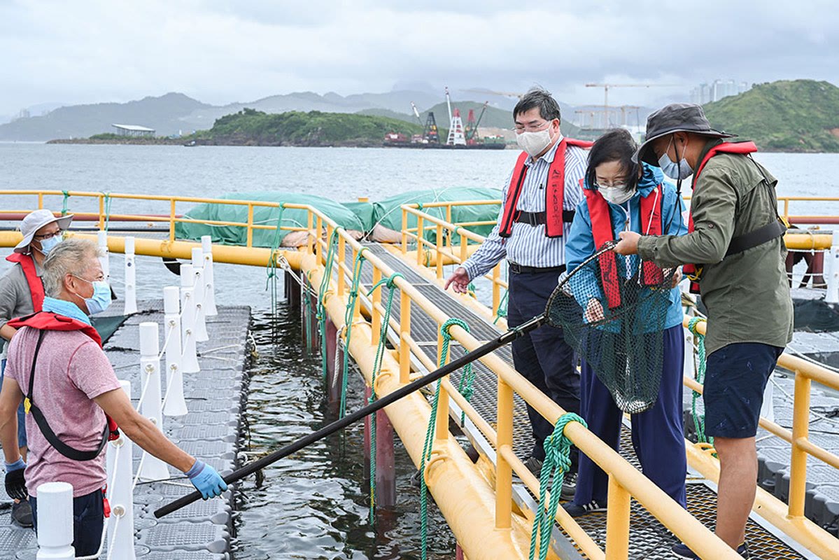 据介绍,目前香港共有26个鱼类养殖区及925个海鱼养殖场。大多数的海鱼养殖场以传统木制浮排悬挂的方式养殖海鱼,这种浮排抗风浪能力弱,容易因极端天气和恶劣海面情况而损毁,引致渔产损失。传统的家庭式养殖场,作业规模较小。为了引领香港海鱼养殖业向现代化及可持续养殖模式转型,改善产能及渔产品质量,香港渔护署设立了配备现代化设备的海产养殖示范场。示范场亦可通过为业界及有意投身养殖业的人士提供培训实习,栽培新血。该署亦会协助拓展渔产品的营销推广,以一条龙的策略为养殖渔业拓展新出路。