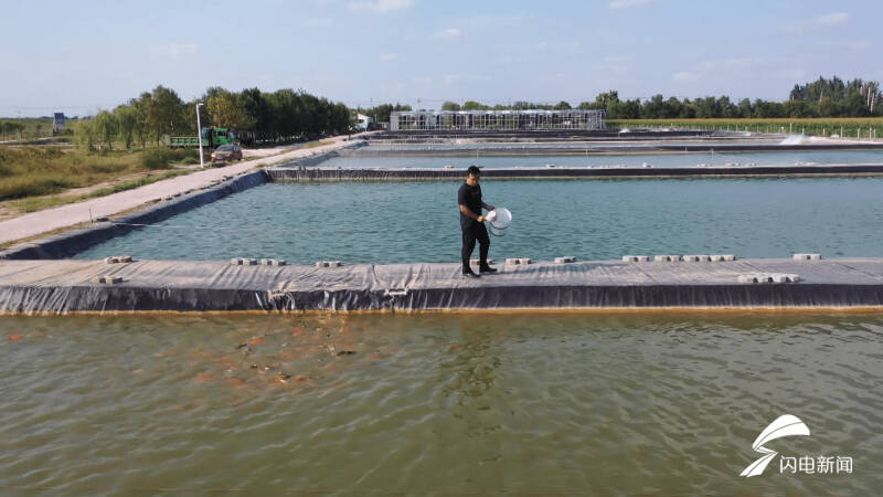 齐鲁网·闪电新闻9月24日讯 德州庆云县尚堂镇南侯村利用本村地势低洼地开展特色锦鲤养殖,发展农村集体经济、乡村休闲旅游等新兴业态。眼下,养殖基地里的大批锦鲤喜获丰收,锦鲤养殖基地项目负责人于洪雷正在为锦鲤喂食。