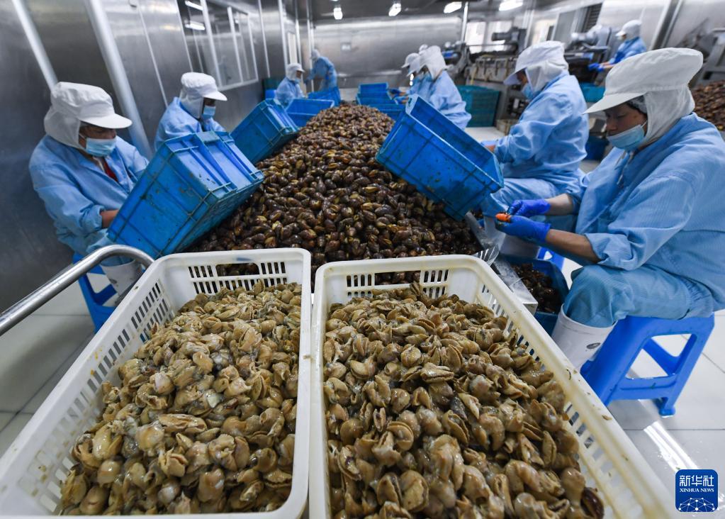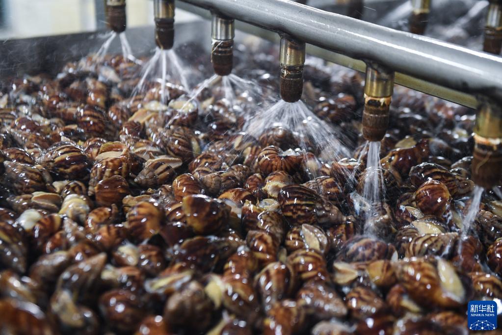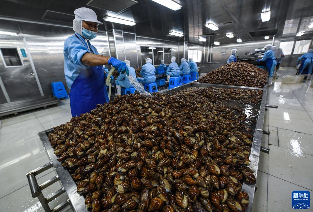 9月22日,工人在嘉兴市潜福食品有限公司的流水线上加工当天从养殖户手中收购的白玉蜗牛。